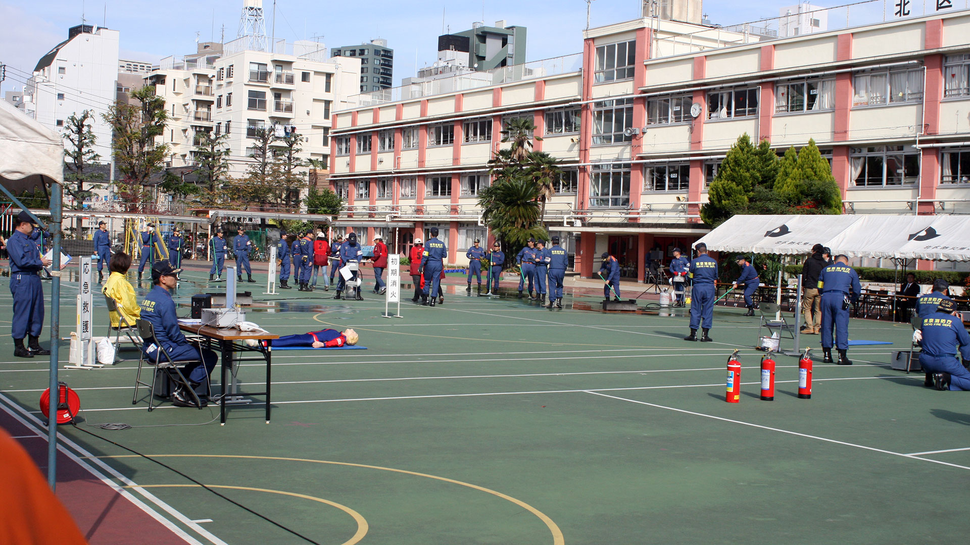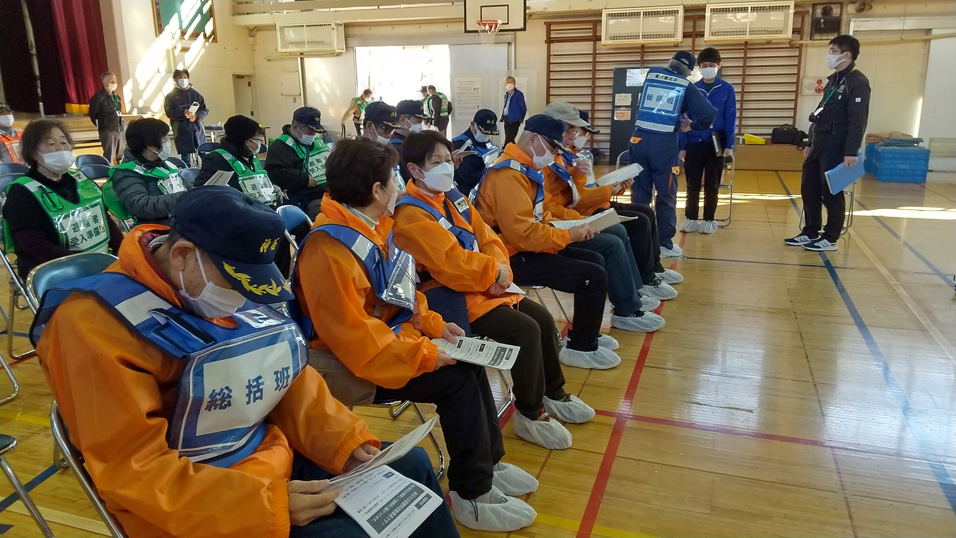 大規模災害を想定し、 避難所の開設や運営を実際に体験する訓練です。 町会同士が連携し、助け合う体制づくりを行っています。